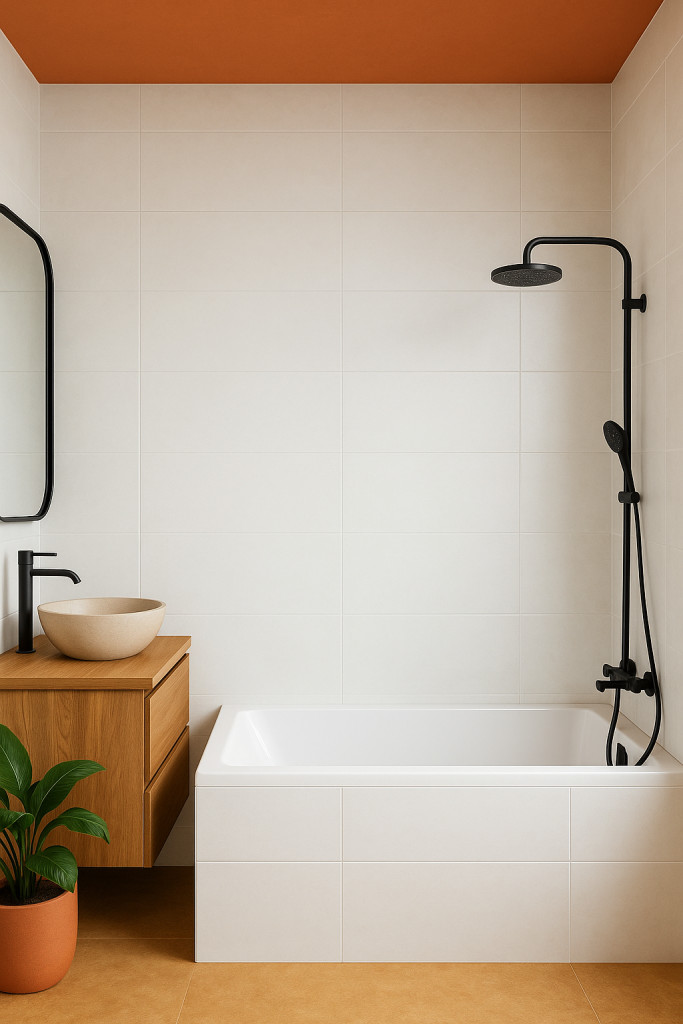 Ez a modern fürdőszoba letisztult, világos megjelenésével nyugalmat áraszt. A 30x90 cm-es fali burkolólap határozott, mégis diszkrét jelenléttel uralja a teret. A lap finom árnyalatai és nagy mérete elegáns, homogén felületet biztosít, miközben modern karaktert ad a helyiségnek. A természetes fa bútor, a fekete csaptelepek és a visszafogott dekoráció tökéletes egyensúlyt teremtenek a minimalista és meleg otthonosság között. Ez a burkolat kiváló választás, ha letisztult, időtálló megoldásban gondolkodsz.