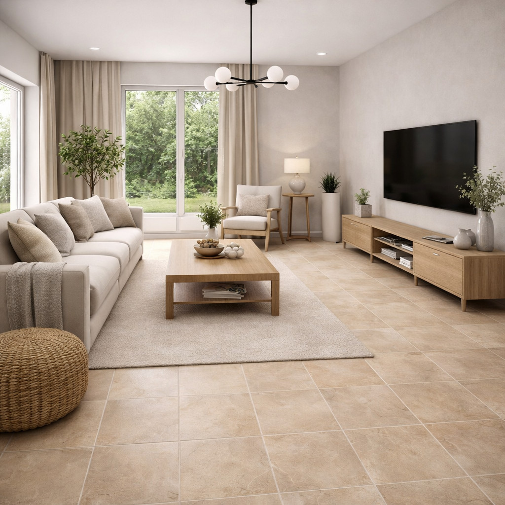 Meleg bézs harmónia és természetes kőhatás kompakt formátumban