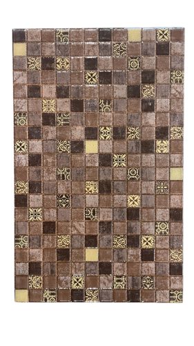 Ez a burkolat egyszerre hozza vissza a régi idők kézműves hangulatát és egy modern tér dekoratív részleteit. A barna árnyalatok közé rejtett arany minták finoman csillannak meg a fényben, így tökéletes választás lehet egy karakteres fürdőszobai falhoz, egyedi kézmosó mögé vagy akár egy étkező dekorcsíkjába.