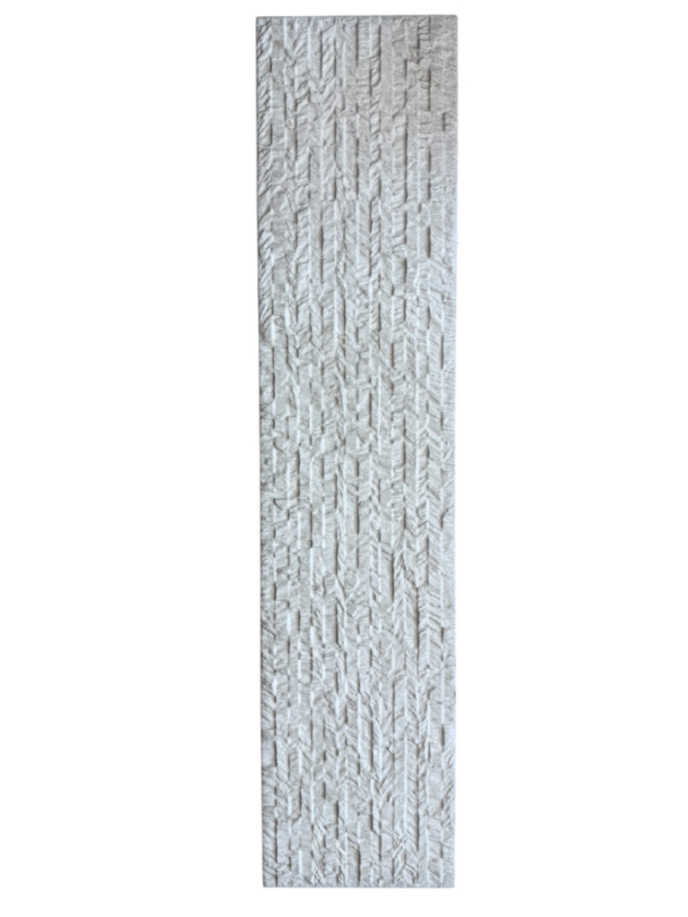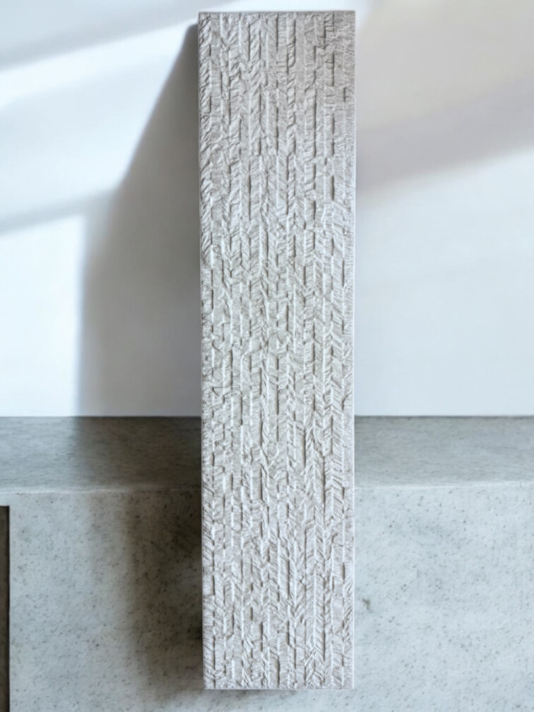 Különleges textúrájú, világosszürke árnyalatú falicsempe, amely modern és dinamikus megjelenést kölcsönöz a térnek. A függőleges irányú mintázat játékos fénytörést eredményez, ezáltal még elegánsabbá teszi a fürdőszobai vagy konyhai falfelületeket. Dekorációs sávként, tükör mögött vagy teljes falfelületre burkolva is kiváló választás egy letisztult, mégis karakteres belső tér kialakításához.