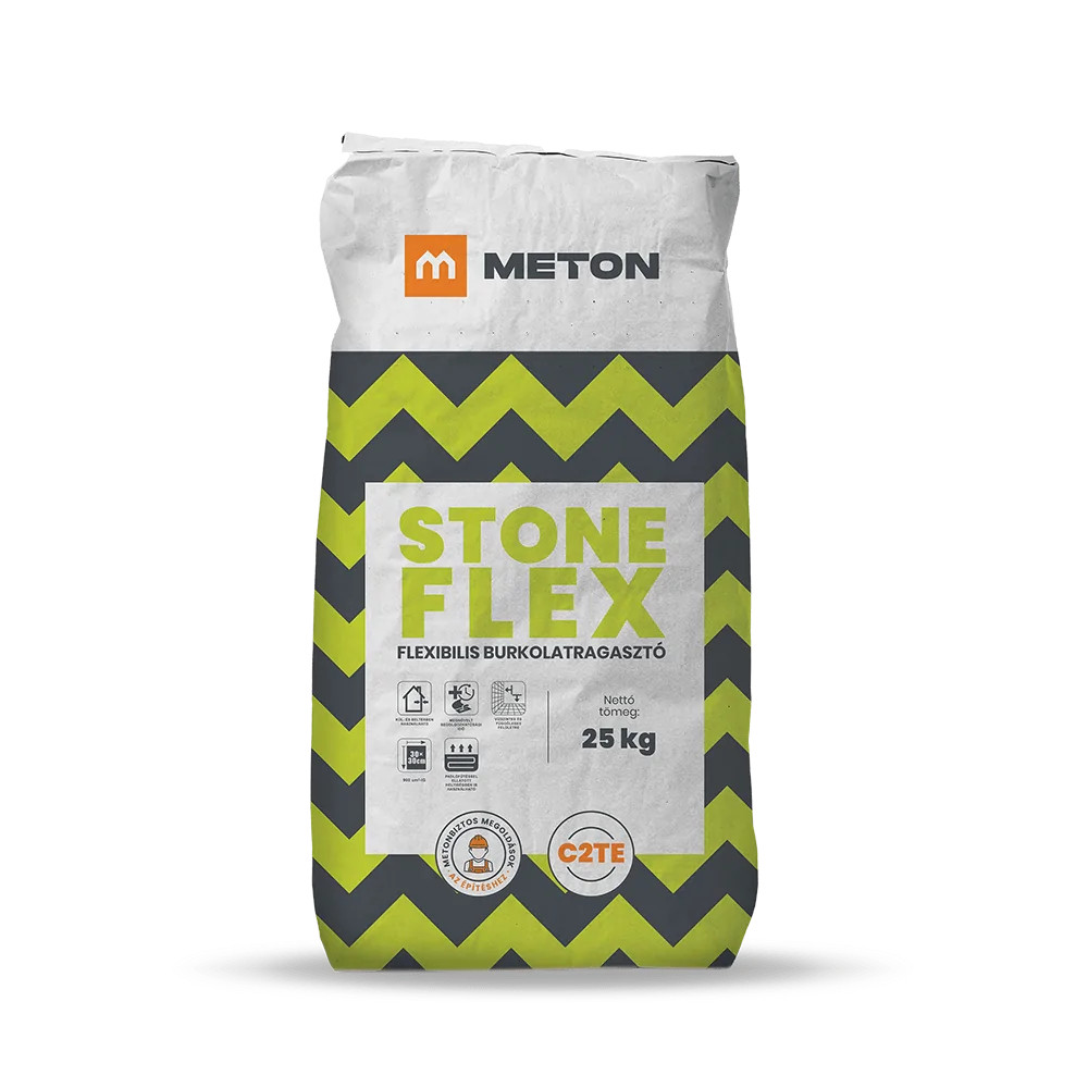 STONE FLEX gyárilag előkevert, por alakú, cement kötőanyagot, ásványi töltőanyagot és tulajdonságjavító adalékokat nagymértékben tartalmazó víz és fagyálló szürke színű flexibilis ragasztóhabarcs. A STONE FLEX C2TE ragasztótapasz MSZ EN 12004 szabvány szerinti a C2TE osztályba tartozik.