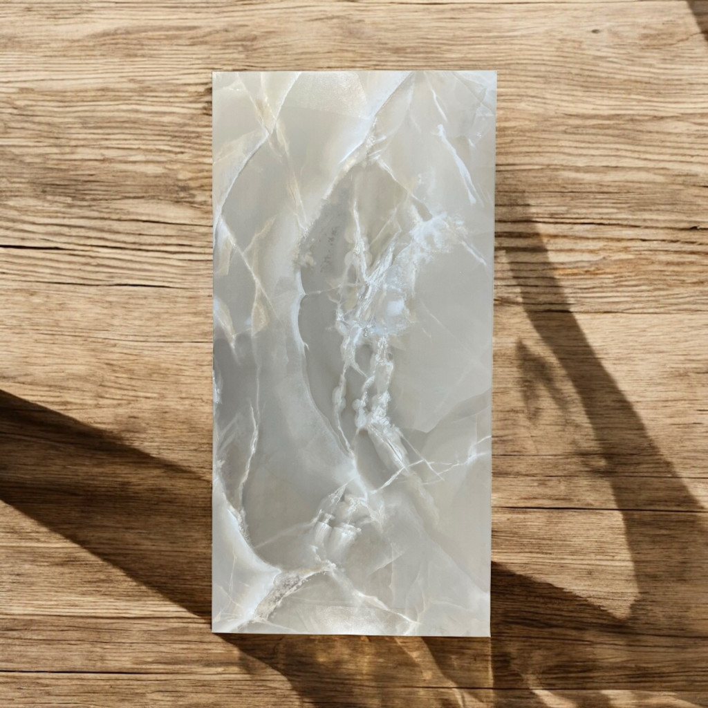 Ez a 60x120 cm-es fényes padlólap a prémium kategóriát képviseli. A különleges onyx hatású mintázat mélységet és eleganciát kölcsönöz a felületnek, miközben a lágy bézs, szürke és fehér árnyalatok harmonikusan olvadnak össze benne. Magasfényű felülete kiválóan tükrözi a fényt, így tágasabbá és fényesebbé teszi a teret. Ideális választás nappaliba, étkezőbe, előkelő fürdőszobába vagy exkluzív üzleti környezetbe, ahol a luxusérzet és a kifinomultság alapelvárás.