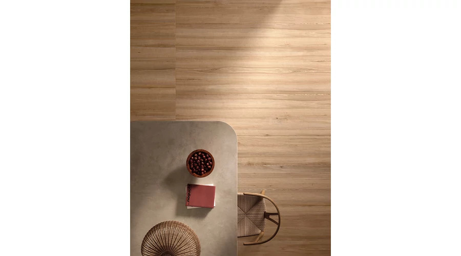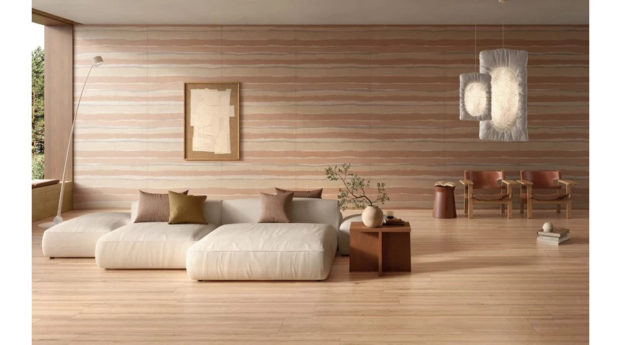 A Native NI 3 Frassino békés, természetes atmoszférát teremt. Kifinomult bézs és erdőzöld tónusok finoman játszanak a faerezetes mintázatban, visszafogottan élénk színátmenetekkel. A hosszú, keskeny formátum optikailag nyújtja a teret, különösen nappalikban, előszobákban vagy fürdőszobákban.