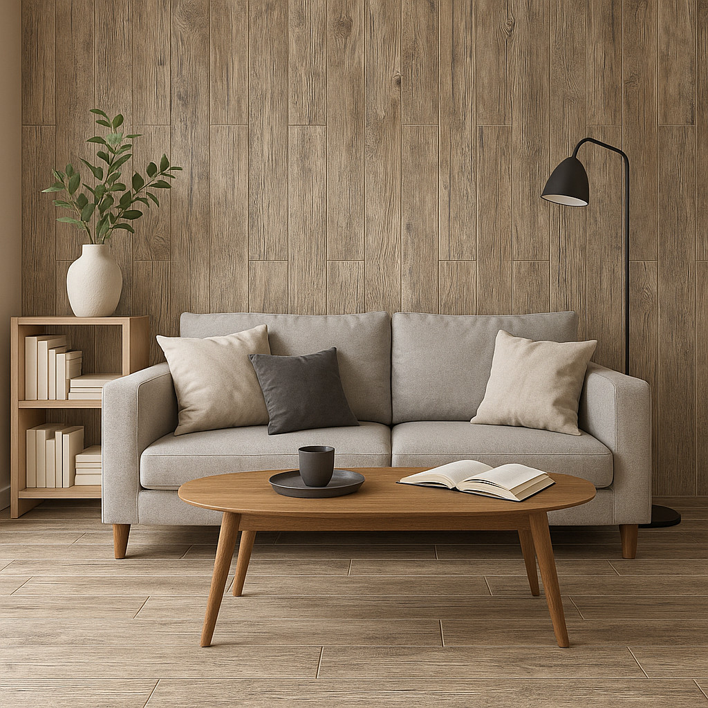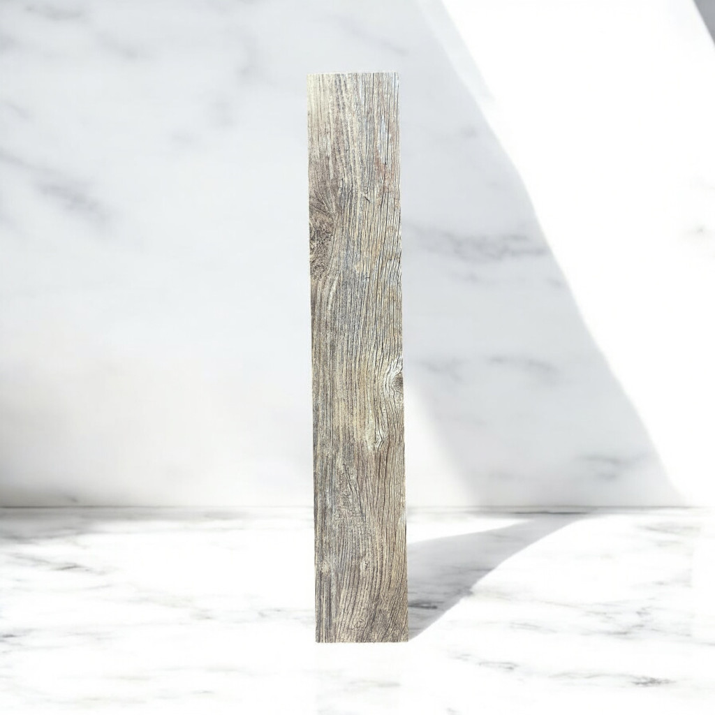 Ez a rusztikus erezetű lap igazi melegséget visz a térbe – akár a padlón, akár egy teljes falfelületen alkalmazva. A természetes fa mintázat ereje elegáns, mégis otthonos összhatást ad. Tökéletes választás nappaliba, olvasósarokba vagy egy modern kabinhangulat megteremtéséhez.