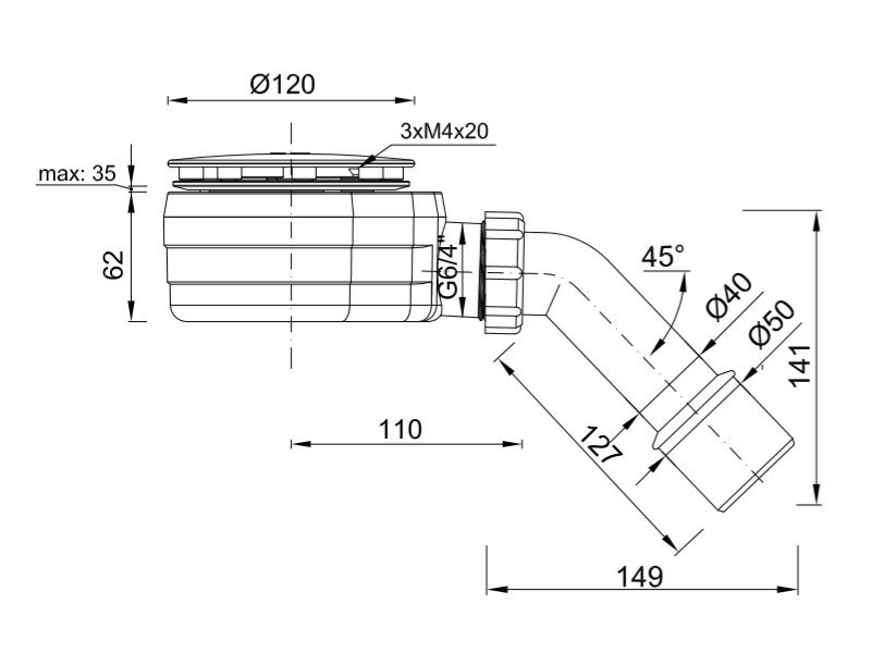 Zuhanytálcaszifon O90 mm, krómozott, 60 mm alacsony